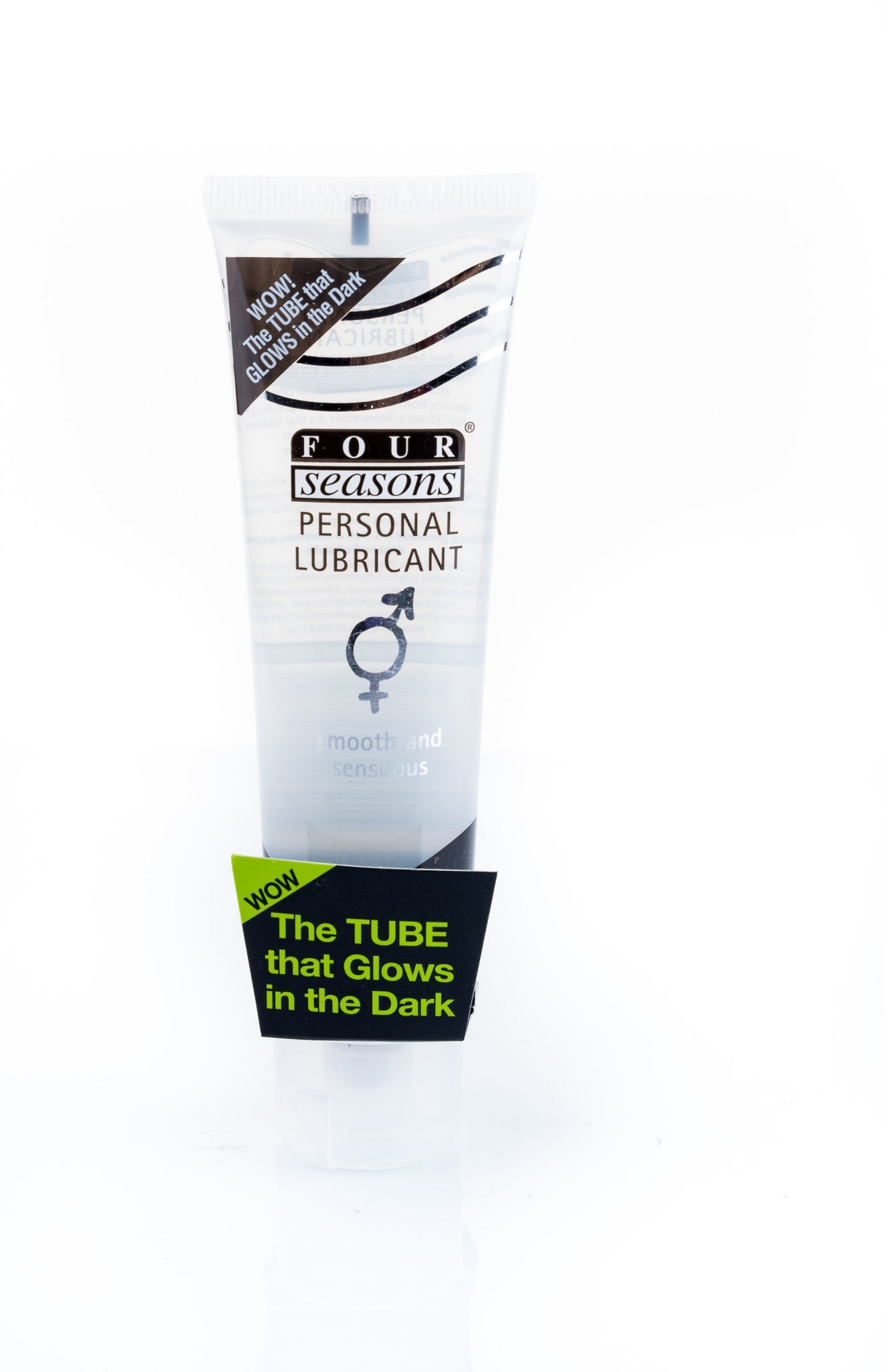 Four Seasons Personal Lubricant comes in a specially designed tube that glows in the dark. For best results, hold the tube near bright light for 30 secs. Remember it’s the tube, not the Lube that glows! Water Based Lubricant