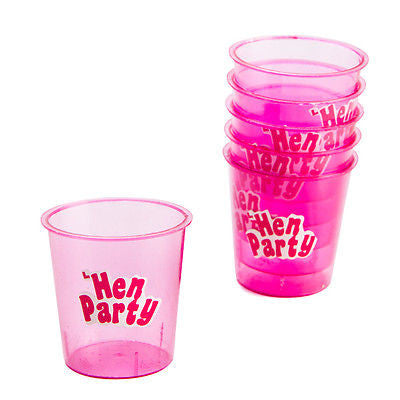 HENS NIGHT SHOT GLASSES PLASTIC SHOT GLASSES. MADE OF STURDY, FLEXIBLE PLASTIC TO PREVENT ACCIDENTAL BREAKAGES STACKABLE SET OF 6 in a packet
