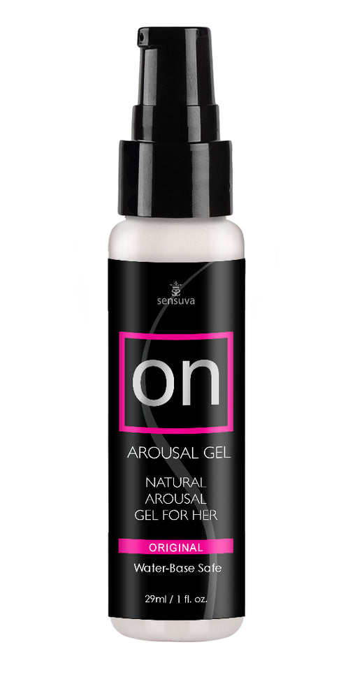 ON Arousal Gel provides the same warm, vibrating sensation you feel with ON Arousal Oil, now in an easy-to-use, mess-free, water-base safe formula! Containing the same unique, natural ingredients found in ON Arousal Oils, ON Arousal Gel creates an exciting sensation that pulsates and vibrates when applied to the clitoris. ON Arousal Gel even makes most women feels as though they are lubricating MORE!On™ for Her Arousal Gel 1 oz. Bottle