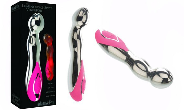 Light up your love life with this gorgeous glowing G-Spot vibe. When it’s off, you can see yourself in its stylish chrome curves. But once it’s on, a sultry red glow illuminates the vibe and your passion. Feel the powerful vibrations of 10 speeds and functions massage you to intense, leg-shaking G-Spot orgasms. And it’s completely waterproof and rechargeable for endless under-the-covers fun. Clean up fast with Adam & Eve Toy Cleaner and a warm water rinse.