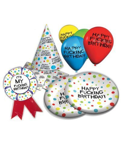 This is the ideal party set up for that naughty adult on your list. This X-rated birthday package contains eight each of 7″ plates, napkins, hats, balloons and one ribbon for the lucky birthday boy or girl to wear.