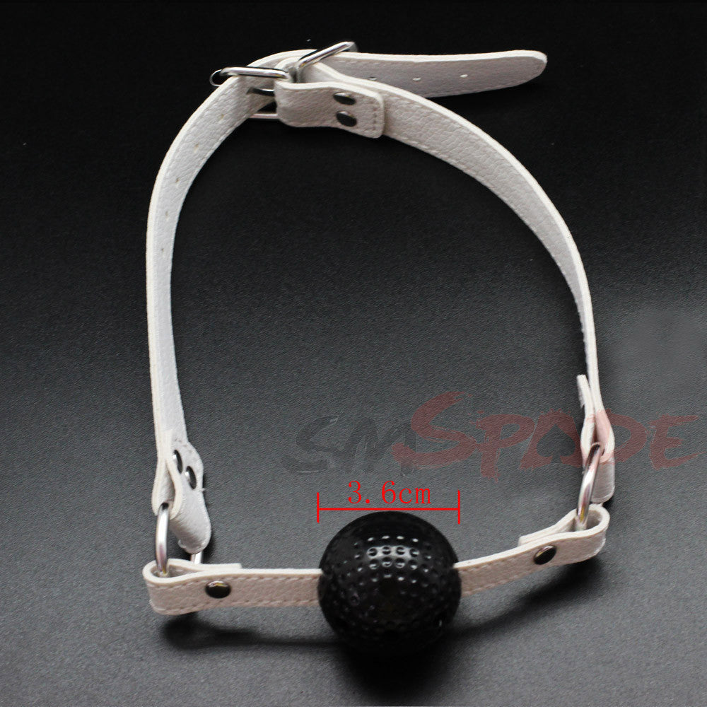 Take control of your fantasies tonight with the White Easy Breathe Leather Ball Gag. Designed for comfort, the firm, non-toxic easy breathe ball has breathing holes for your willing submissive.  The high quality,white leather strap measures 10 inches in length. Simply adjust the buckle for the perfect fit. Add to the fantasy by covering your partner’s eyes with the mask. Buckle up and enjoy the ride! Features * Non toxic * Adjustable from 44cm – 48cm* Designed for comfort Easy Breathe Ball Gag Diameter : 3.5cm Perfect For Beginners